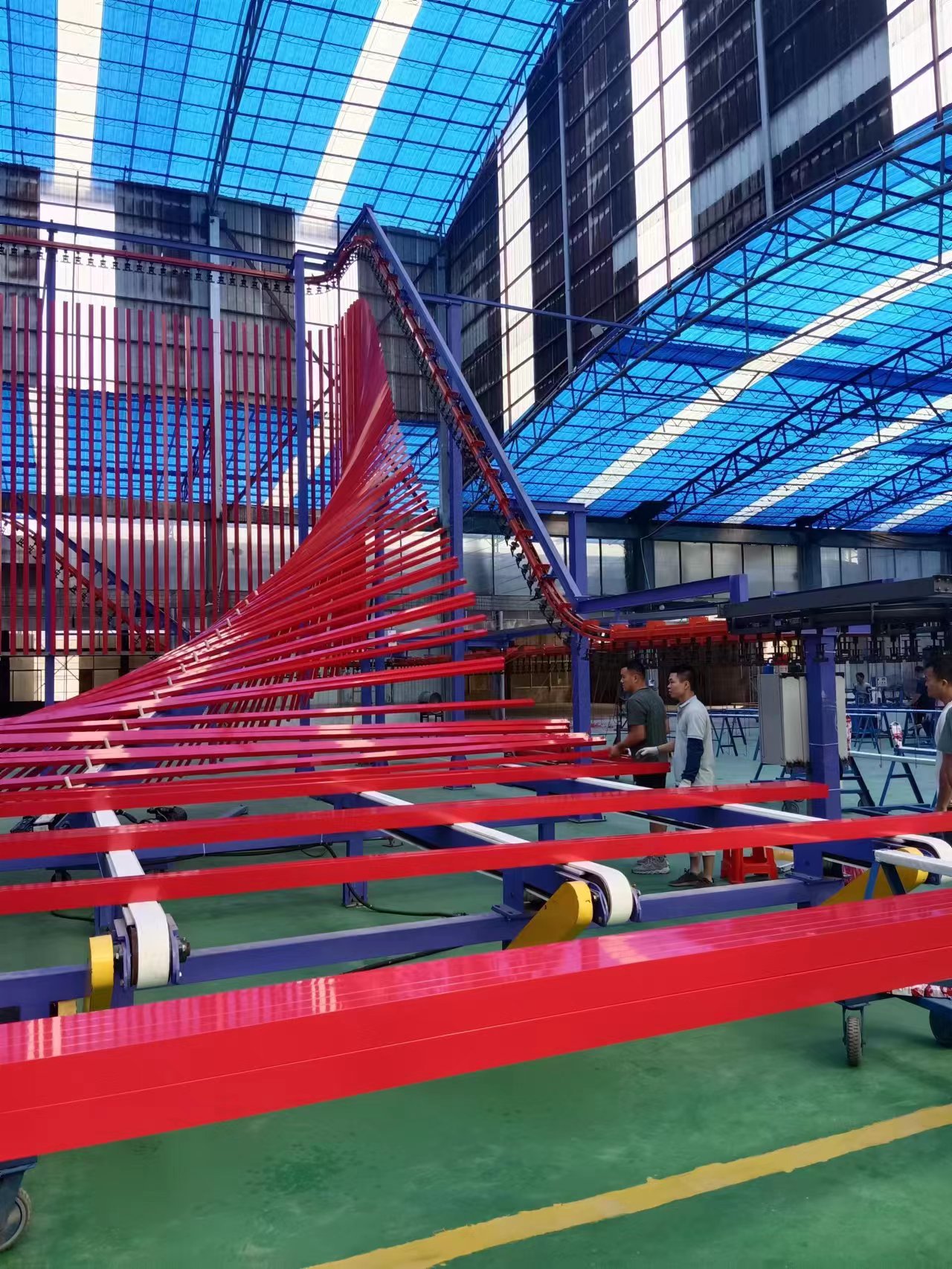 An Electrostatic Powder Coating Line is an advanced surface finishing system that uses electrostatic charging technology to apply powder coatings onto metal parts. The charged powder particles adhere evenly to grounded workpieces and are then cured in a high-temperature oven, forming a durable, smooth, and attractive finish.